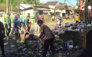 Arahan Presiden RI, Polsek Kresek Polresta Tangerang bersama Forkopimcam Korve Bersihkan Sampah