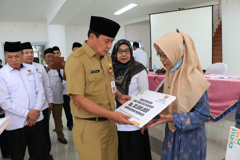 Sekda melanjutkan bahwa penyaluran ZIS BAZNAS Kabupaten Tangerang untuk aspek pendidikan dan kesehatan tahun 2023, diantaranya berupa: bantuan mebeler 48 unit, bantuan bedah madrasah 12 unit dan bantuan SKSS untuk 14 orang. Selain itu juga diserahkan bantuan sarana keagamaan kepada masjid 5 unit, mushola 7 unit, Madrasah Tsyanawiyah 12 unit dan mustahik sebanyak 14 orang.