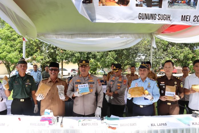 Dengan rincian Sabu seberat 2.122 kg, Ganja seberat 4.570 kg, Ekstasi seberat 2.64 gr, dan Tembakau Gorila seberat 0.60 gr.