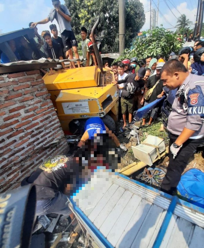 Tak hanya itu saja, Forklip tersebut kemudian menabrak kendaraan R2 Honda Beat Nopol BE-4633-DS yang di kendarai RG juga menabrak pengguna jalan atau pejalan kaki AP dan berakhir setelah menabrak rumah warga.