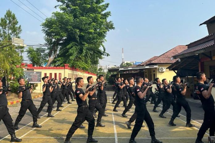 Banten,koranpelita.co – Dalam rangka menjaga stamina, Batalyon A Pelopor Satbrimob Polda Banten melaksanakan senam senjata di Mako Satbrimob Polda Banten,Selasa (23/5/2023).