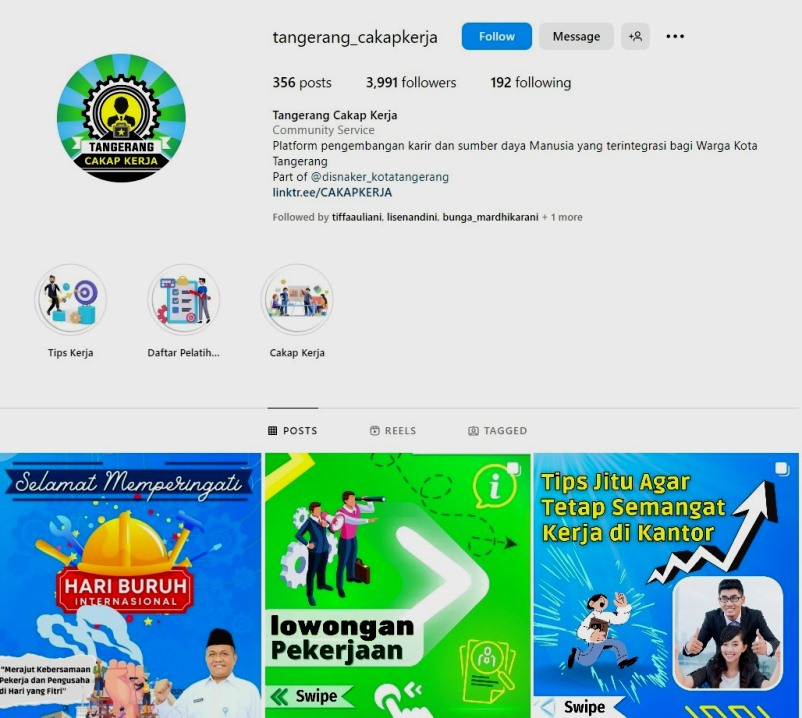 Tak hanya informasi lowongan pekerjaan, kata Ujang tak jarang instagram @tangerang_cakapkerja juga sering menyebar informasi walk interview yang dilakukan secara massal langsung di Kantor Disnaker. Diketahui, ini menjadi salah satu kerjasama Disnaker dengan perusahaan dapat percepat penyerapan tenaga kerja.