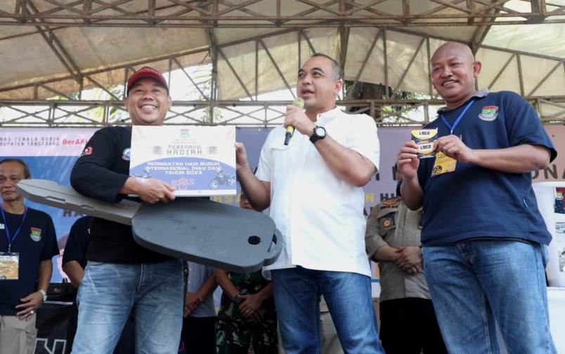 Bupati Tangerang mengucapkan selamat hari buruh dan berharap semoga buruh di Kabupaten Tangerang ke depannya semakin sejahtera serta komunikasi dengan pemerintah daerah semakin solid dan kompak.