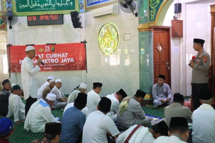 Kota Tangerang,koranpelita.co – Secara rutin Kapolres Metro Tangerang Kota, Kombes Pol Zain Dwi Nugroho bersama pejabat utama (PJU) dan Kapolsek melaksanakan shalat Jumat keliling sekaligus menjalankan program Jumat Curhat Polda Metro Jaya.