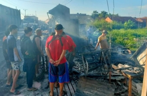 Di lokasi ini api menghanguskan empat bangunan semi permanen di tepi jalan, yakni kios tambal ban, kios aksesoris motor, kios ayam goreng tepung dan kios servis jok.