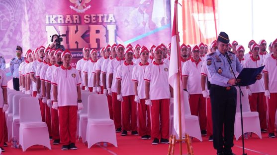 Bogor, koranpelita.co – Total 76 Narapidana Teroris; 72 dari Lembaga Pemasyarakatan (Lapas) Narkotika Kelas IIA Gunung Sindur; 2 dari Lapas Khusus Kelas IIA Gunung Sindur; 2 dari Lapas Kelas IIA Banceuy, nyatakan Ikrar Setia Negara Kesatuan Republik Indonesia (NKRI) dan siap kembali berkarya untuk Indonesia, Kamis (01/06/2023).