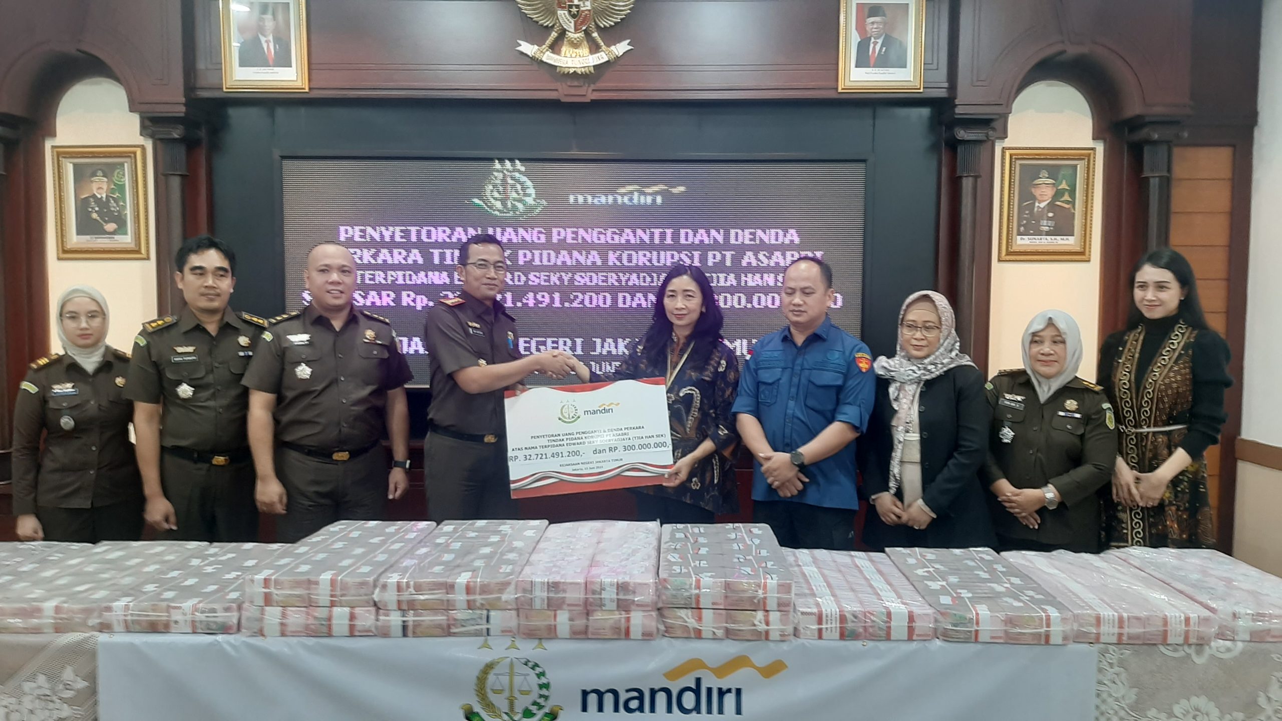 Adapun penyetoran uang pengganti dan denda kasus PT Asabri atas nama terpidana Edward Seky Soerdjaya ke kas negara dilakukan secara simbolis oleh Kajari Jakarta Timur Dwi Antoro kepada pihak Bank Mandiri.
