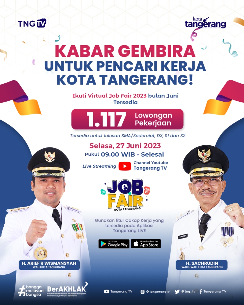 “Tak berbeda dengan virtual jobfair bulan-bulan sebelumnya. Kegiatan ini hanya diperuntukkan bagi mereka ber-KTP Kota Tangerang. Pastikan, kalian para pencari kerja yang ingin memanfaatkan virtual jobfair untuk lebih dulu mendownload aplikasi Tangerang LIVE dan memiliki akun yang terlah terverifikasi,” papar Ujang Hendra Gunawan, Kepala Disnaker, Senin (26/6/2023).