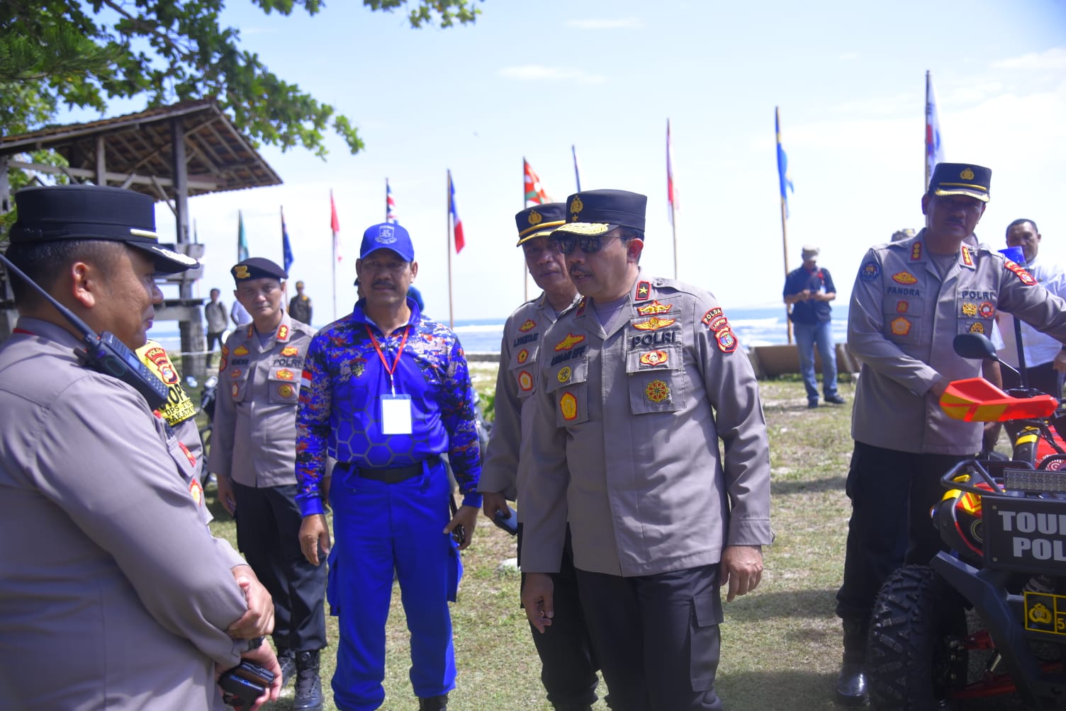 Waka Polda beserta rombongan dalam hal ini meninjau berlangsungnya kegiatan Krui Pro WSL Qs 5000 yang sedang berlangsung di Pesisir Barat Krui.