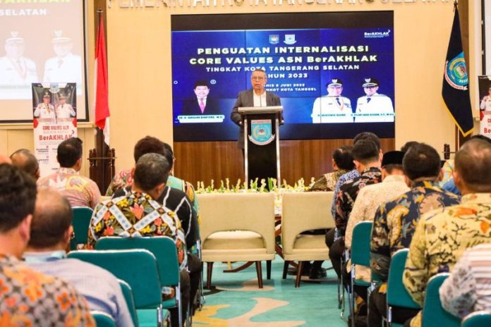 | Kota Tangsel,koranpelita.co – Aparatur pemerintahan saat ini dituntut untuk mencermati setiap perubahan peradaban agar dapat memberikan percepatan pelayanan kepada masyarakat. Hal tersebut disampaikan Wali Kota Tangerang Selatan Benyamin Davnie saat mendampingi Sekretaris Jenderal (Sekjen) Kementerian Dalam Negeri (Kemendagri) Suhajar Diantoro, dalam kegiatan Percepatan Implementasi Reformasi Birokrasi di Tangerang Selatan dalam kaitannya internalisasi core values ASN BerAKHLAK, di Aula Blandongan, Puspemkot Tangsel, Kamis (8/6/2023). “Pemerintahan zaman sekarang telah berubah semuanya. Dari sisi aturan, dari standar operasional prosedur, aspek hukum dan dari aspek-aspek yang lainnya. Dan nilai utama juga sudah mengalami pergeseran mengikuti peradaban zaman,” ucap Benyamin. Budaya itu berubah seperti rapat yang tidak lagi mengenal ruang dan waktu, hingga penggunaan teknologi dalam melayani masyarakat. “Kita pernah rapat jam 1 pagi, rapat hingga jam 4 pagi untuk mengupas tuntas APBD dan seterusnya,” ungkapnya. Hal ini dilakukan kata Benyamin, untuk mendobrak kebiasaan yang dilakukan oleh aparatur pemerintahan terutama dalam hal waktu kerja. Ini menjadi ketentuan bagi kita di Pemerintah Kota Tangerang Selatan. “Termasuk nilai-nilai yang harus dimiliki oleh para ASN, mulai dari orientasi pelayanan, akuntabel, adaptif, kompeten, harmonis, loyal,” ucapnya. BACA JUGA : Pj. Gubernur Banten Lepas Kontingen Penas KTNA 2023 Menuju Sumbar Sementara itu, Sekjen Kemendagri, Suhajar Diantoro menekankan kepada seluruh aparatur untuk memberi pelayanan yang optimal kepada masyarakat. “Yang hadir di sini, kawan-kawan yang paling ujung ya, Camat, Lurah. Nah mereka kan paling ujung, artinya lurah ini setiap hari ketemu sama rakyat. Makanya saya beri motivasi,” ucapnya. Dimana sesuai dengan perintah Presiden, bahwa budaya kerja yang harus ditekankan yakni budaya kerja BerAKHLAK. “BerAkhlak itu berorientasi pada pelayanan, apapun jabatan kita kerja kita ya melayani rakyat. Nah itu yang selalu kita tekankan,” ujarnya. “Digitalisasi ini sudah menjadi kebutuhan, bukan lagi tuntutan,” ucapnya. “Nah jadi kita harus bangun, semua anak-anak muda kita yang jadi pegawai, untuk meyakinkan negara yang maju, daerah yang maju, yakni mampu mengubah pemerintahannya menjadi organisasi pelayanan publik yang efektif,” pungkasnya.(*/sam). |