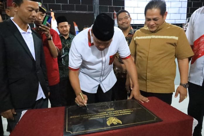 Kegiatan ditutup dengan pengguntingan pita oleh Anggota Dewan Fraksi PDI P Arif Rahman Hakim dan penandatanganan prasasti peresmian kantor sekretariat RW 07 Kaliabang Tengah Kecamatan Bekasi Utara. (D nu).
