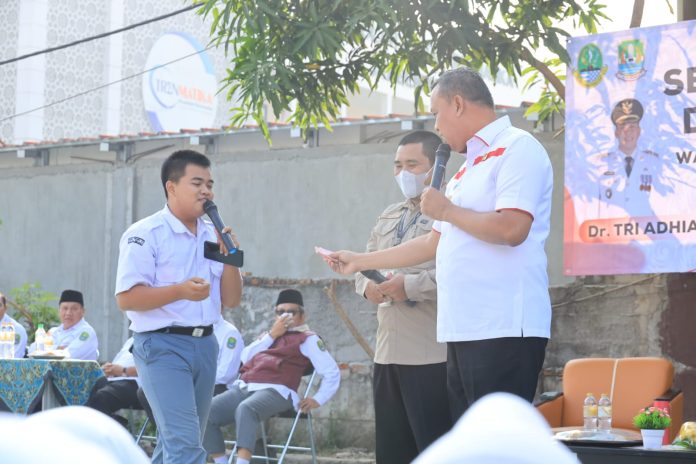 Wali Kota Bekasi, Tri Adhianto berkesempatan sambangi SMK Negeri 12 di Kecamatan Pondokgede untuk langsung menyampaikan materi Sosialisasi Wawasan Kebangsaan.
