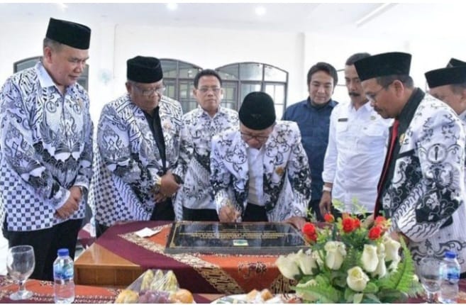 Peresmian gedung PGRI hasil renovasi dilakukan Bupati Cianjur H. Herman Suherman, Rabu 27 September 2023 lalu.