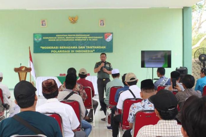 Kodam Jaya,koranpelita.co – Dalam rangka mendukung kerukunan beragama dan mengatasi tantangan polarisasi di Indonesia, Kodim 0510/Tigaraksa menyelenggarakan kegiatan komunikasi sosial pada Semester II Tahun 2023 dengan tema “Moderasi Beragama dan Tantangan Polarisasi”, berlangsung di Aula Dharma Wangsa Makodim 0510/Tigaraksa, Rabu (18/10/2023).