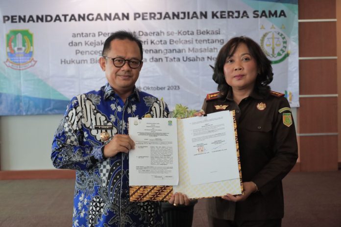 Perjanjian kerja sama antara Pemerintah Kota Bekasi dan Kejaksaan Negeri Kota Bekasi berlangsung di Aula lantai lima Kantor Kejaksaan Negeri Kota Bekasi yang dihadiri langsung oleh Kepala Kejaksaan Negeri Kota Bekasi Laksmi Indriyah, Sekretaris Daerah Kota Bekasi Junaedi Kepala Perangkat Daerah Kota Bekasi, Camat se-Kota Bekasi dan Kepala Bagian Kerjasama Kustantinah.