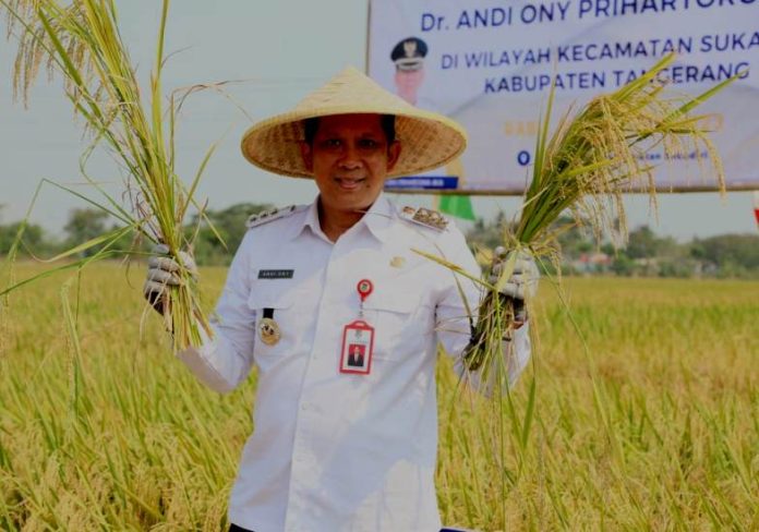 Pada kesempatan tersebut juga, Pj Bupati Andi Ony secara simbolis menyerahkan bantuan Pemerintah Kabupaten Tangerang berupa: 1 Unit Power Thresher dan 39 Unit Hand Traktor, benih padi 5 ton dari UPTD Benih Dinas Pertanian dan Ketahanan Pangan Kabupaten Tangerang dan 118.675 kg Varietas Inpari 32 dari Kementerian Pertanian serta Pupuk NPK 28.500 kg.