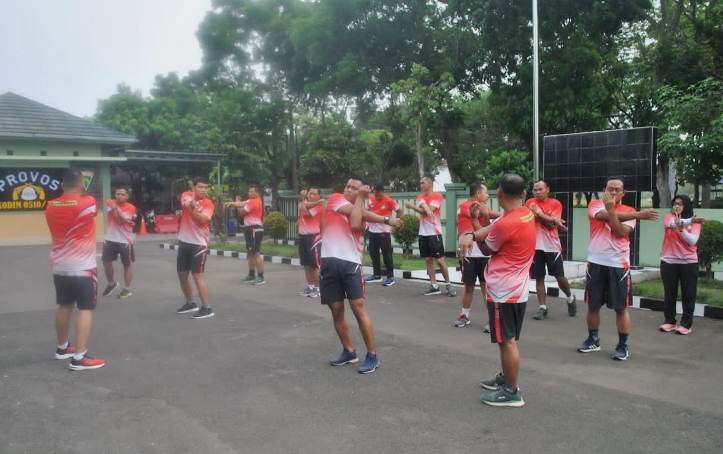 Dalam apel pagi dilakukan pengecekan personil oleh Pasi Ter Kodim 0510/Tigaraksa dan menyampaikan bahwa olahraga bersama yang dilaksanakan ini sesuai dengan arahan dari Komando Atas agar melaksanakan olahraga rutin.