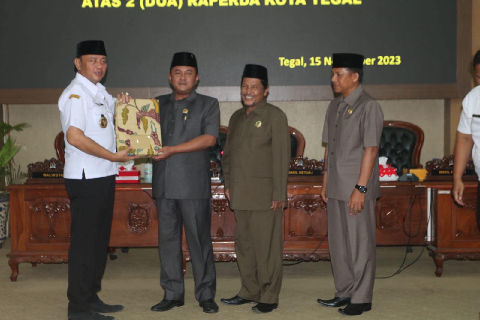Rapat Paripurna tersebut, dipipimpin oleh Ketua DPRD, Kusnendro, Wakil Ketua DPRD Kota Tegal, Wasmad Edy Susilo, Habib Ali Zaenal dan dihadiri oleh Wali Kota Tegal, Dedy Yon Supriyono, Sekretaris Daerah, Agus Dwi Sulistyantono, Kepala OPD, Camat, Lurah, Tim Penggerak PKK, Direktur BUMD Kota Tegal.