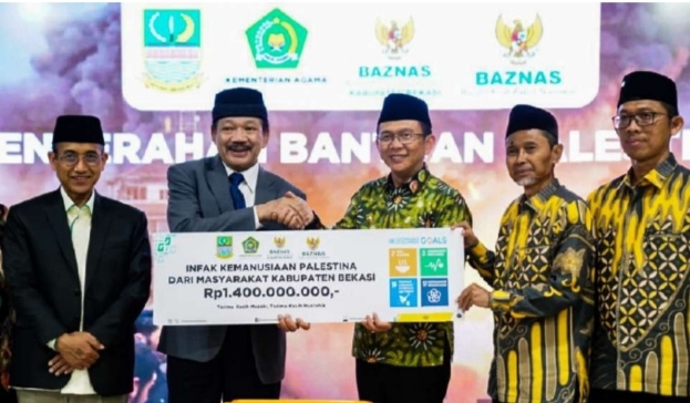 Jakarta, koranpelita.co – Pemerintah Kabupaten Bekasi melalui Badan Amil Zakat Nasional (Baznas) Kabupaten Bekasi, menyerahkan infak kemanusiaan Palestina dari masyarakat Kabupaten Bekasi berupa uang tunai sebesar Rp 1,4 Miliar kepada Badan Amil Zakat Nasional (Baznas) Republik Indonesia sebagai bentuk aksi kemanusiaan dan solidaritas terhadap rakyat Palestina yang menjadi korban agresi militer Israel.