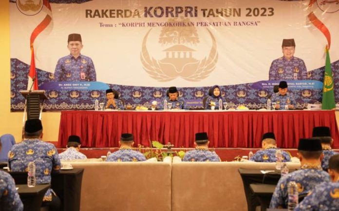 Kab Tangerang,Penjabat (Pj) Bupati Tangerang Andi Ony membuka rapat kerja (Raker) Koprs Pegawai Republik Indonesia Kabupaten Tangerang yang dilaksanakan di Ballroom Hotel Yasmin Binong, Kecamatan Curug,Jumat ( 29/12/2023).