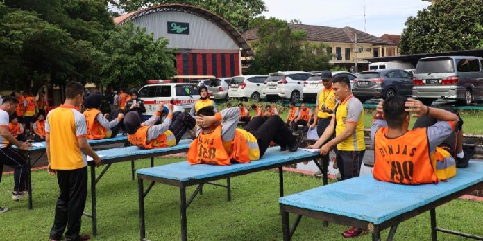 “Adapun tes Samjas yang di uji terdiri dari Samapta A yakni Lari 12 Menit dan Samapta B yang terdiri Pull Up, Shit Up, Push Up dan Shuttle Run,” ucapnya.