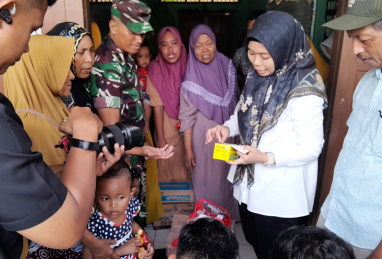 Usai melakukan monitoring TPS, Tim 1 melakukan peninjauan pengungsi banjir di SD Negeri Sari dan menyerahkan bantuan. (Nungki)