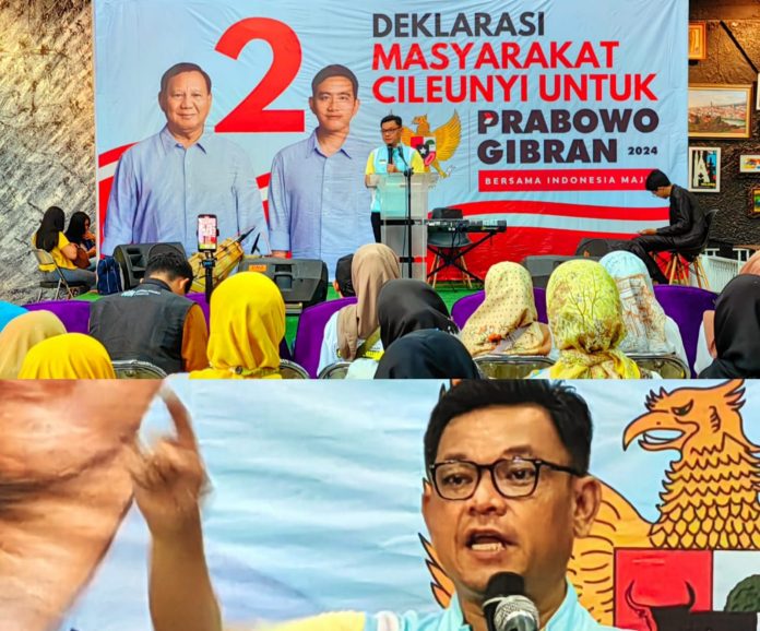 Acara deklarasi masyarakat Cileunyi untuk Prabowo-Gibran yang berlangsung Technolife Plaza Exhibition Hall, Jalan Ir Soekarno, Cibeusi, Kecamatan Jatinangor, Kabupaten Sumedang itu, diinisiasi oleh Imam Hidayat, caleg DPRD Kabupaten Bandung dari Partai Golkar.