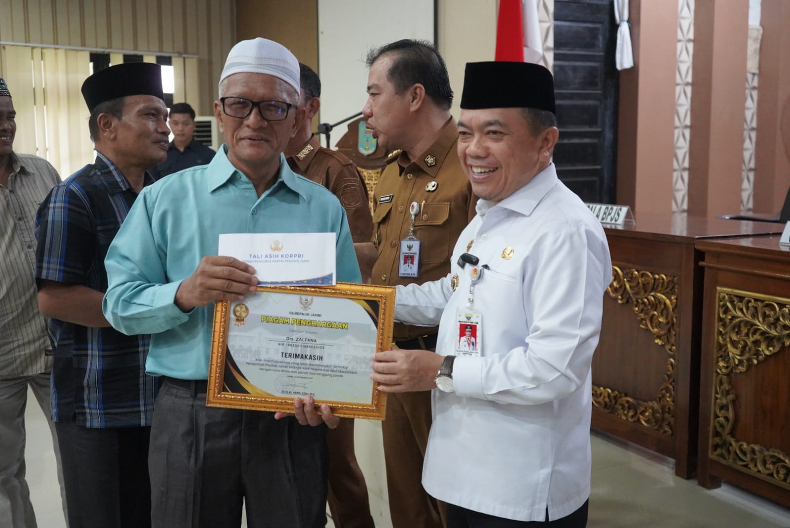Penyerahan Piagam dan Bantuan Pensiunan Aparatur Sipil Negara (ASN) Guru dilingkup Pemerintah Provinsi Jambi yang berada di Kabupaten Merangin, Bantuan Korpri dan BPJS Ketenagakerjaan ini diserahkan secara simbolis oleh Gubernur Al Haris yang diterima langsung oleh para pensiunan.