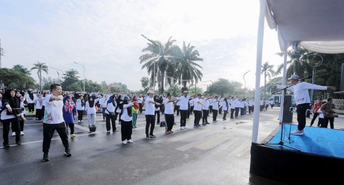 Penjabat (PJ) Wali Kota Tangerang, Dr. Nurdin, bersama Kepala Kantor Wilayah Kementerian Agama Provinsi Banten, Dr. H. Nanang Fatchurochman, dan Kepala Kantor Kementerian Agama Kota Tangerang, Samsudin, turut serta mengikuti Senam Sehat Haji bersama 1773 Calon Haji (Calhaj)Kota Tangerang.