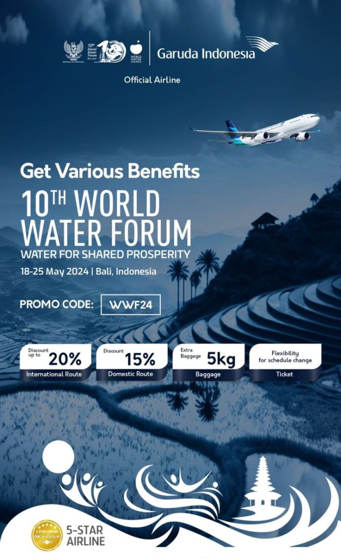 Jakarta,koranpelita.co – Maskapai penerbangan nasional Garuda Indonesia secara berkelanjutan terus mewujudkan komitmennya dalam mendukung penyelenggaraan event internasional diantaranya dengan menjadi Official Airline bagi penyelenggaraan World Water Forum (WWF) 2024, yang akan berlangsung di Bali Nusa Dua Convention Center, Bali, pada 18-25 Mei 2024 mendatang.