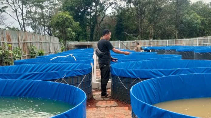 KORAN PELITA – Puluhan kolam ikan terpal tertata rapi di Kampung Burangkeng, Desa Ciledug, Kecamatan Setu, Kabupaten Bekasi. Ribuan bibit lele telah dimasukkan ke dalam kolam berbentuk bulat itu.