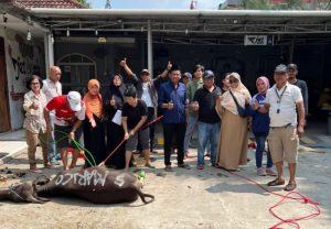 Bekasi, koranpelita.co – Anggota DPRD Kab Bekasi Marico SE. MM berbagi rasa dengan turut serta memberikan hewan qurban sapi dan kambing, yang digelar di halaman Hotel DI, Tambun Selatan, Kab Bekasi (17/06/2024).