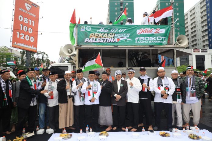 Kota Bekasi, koranpelita co – Aksi Solidaritas Kota Bekasi bersama Palestina Jilid II yang diselenggarakan di Jl. Jend A. Yani No. 1 telah berjalan dengan sejuk, khidmat dan tertib. Minggu,(07/07/2024).