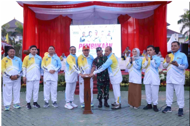 Dalam kesempatan tersebut, hadir Sekretaris Daerah Dedy Supriyadi mewakili Pj Bupati, Asda 1 Sri Enny Mainiarti, beserta unsur Forkopimda, Kadisbudpora Iman Nugraha, perwakilan dan ketua organisasi olahraga.
