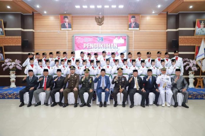 Kualatungkal, koranpelita.co – Sebanyak 35 Putra-Putri terbaik Tanjung Jabung Barat resmi dikukuhkan Bupati Tanjab Barat Drs. H. Anwar Sadat, M.Ag sebagai anggota Pasukan Pengibar Bendera Pusaka (Paskibraka) tahun 2024. Pengukuhan yang berlangsung khidmat di rumah Dinas Bupati menandai puncak dari pelatihan intensif selama 20 hari. Kamis malam (15/08/2024).