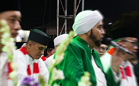 Dalam kesempatan tersebut, tidak hanya pembacaan ayat suci Al-Quran dan sholawat nabi yang dikumandangkan merdu, juga syair bermuatan pesan-pesan kecintaan tanah air dilantunkan Habib Syech bersama para jamaah yang membuat suasana semakin hikmat.