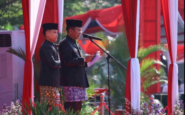 Bekasi, koranpelita.co – Pj Bupati Bekasi Dani Ramdan menjadi Pembina Upacara pada peringatan Hari Jadi Kabupaten Bekasi ke-74 tahun 2024 yang berlangsung di Plaza Pemda, Cikarang Pusat, pada Kamis (15/08/2024).