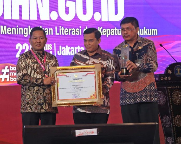 “Tentunya apresiasi kepada seluruh pihak yang berdedikasi dan berkontribusi dalam mengelola dan memberikan pelayan informasi hukum bagi masyarakat secara lengkap, tepat dan akurat. Harapannya penghargaan ini dapat semakin melecut semangat dan motivasi agar bisa lebih baik lagi,” tutur Sekda, usai menerima penghargaan.