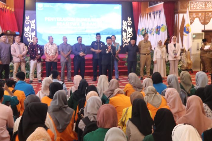 Jambi, koranpelita.co – Gubernur Jambi H. Al Haris, menyerahkan bantuan secara simbolis kepada penerima bantuan beasiswa Dumisake Pemerintah Provinsi Jambi sebanyak 376 orang, diantaranya 300 orang penerima bantuan beasiswa Dumisake S1 kurang mampu/miskin dan 76 orang penerima program beasiswa Dumisake S3 Luar dan Dalam Negeri.