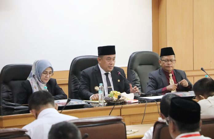 Bekasi, koranpelita.co – Pj Bupati Bekasi Dedy Supriyadi didampingi Pj Sekda Jaoharul Alam, beserta Asisten Daerah memimpin Rapat Pimpinan Evaluasi Anggaran dan Pelaksanaan Kegiatan Pembangunan Pemerintah Kabupaten Bekasi, di ruang rapat KH.R Ma’mun Nawawi, Gedung Bupati, Kompleks Pemkab Cikarang Pusat pada Senin (28/10/2024).