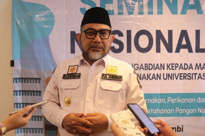 Jambi, koranpelita.co – Penjabat Sementara (Pjs) Gubernur Jambi H. Sudirman, mengemukakan bahwa Penelitian dan seminar hasil-hasil penelitian yang dilaksanakan oleh fakultas Peternakan (Fapet) ini selaras dengan salah satu prioritas pembangunan Pemerintah Provinsi Jambi, untuk mewujudkan ketahanan dan kemandirian pangan. Hal ini dikemukakannya dalam Seminar Nasional VI Hasil-Hasil Penelitian dan Pengabdian Kepada Masyarakat Fakultas Peternakan Universitas Jambi, bertempat di Yello Hotel Jambi, Rabu (16/10/2024).