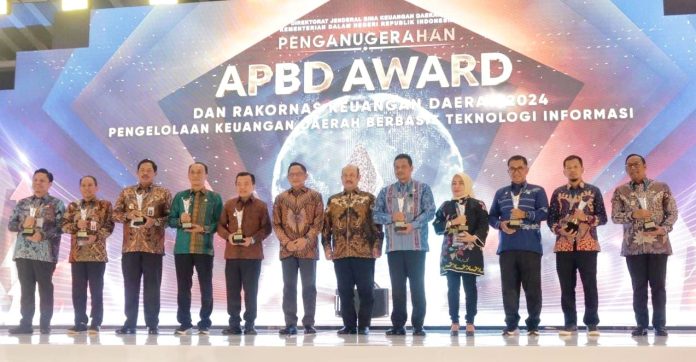 Rapat Koordinasi Nasional Keuangan Daerah dan Penganugerahan APBD Awards Tahun 2024 digelar di Hotel Grand Sahid Jaya, Jakarta Pusat, pada Rabu (18/12/2024).