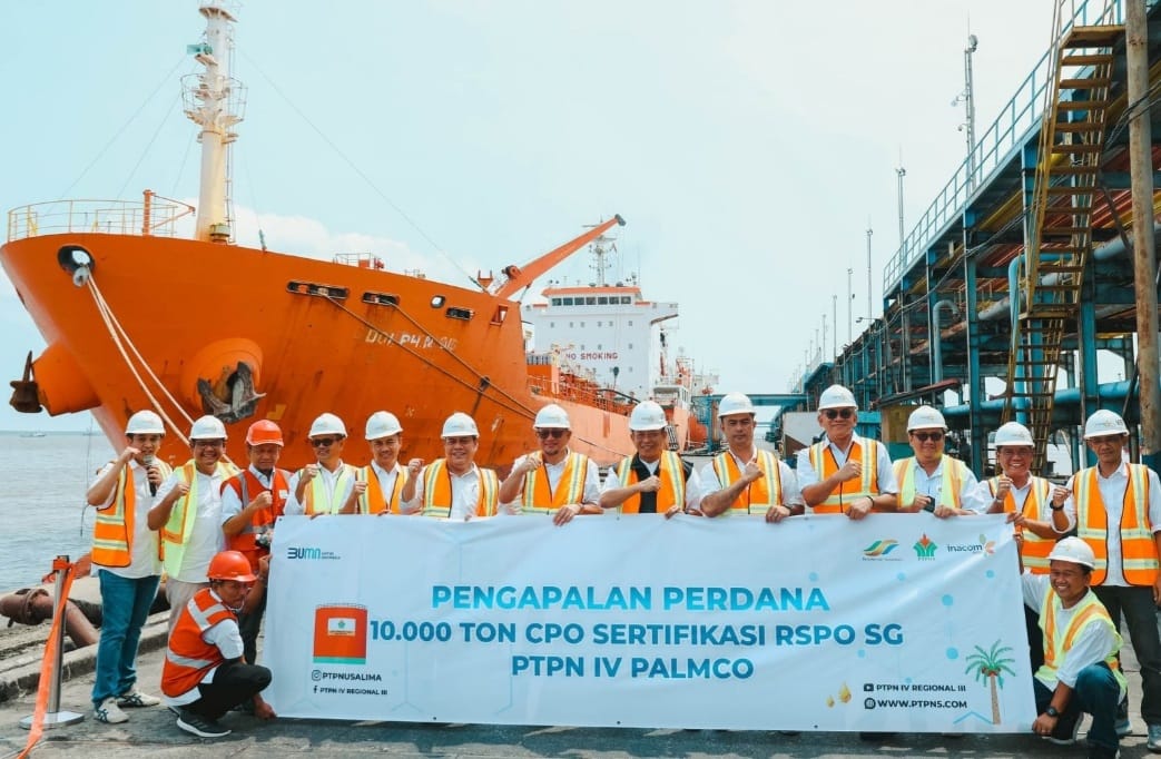 JAMBI, koranpelita .co – Holding Perkebunan Nusantara (Persero) melalui anak usahanya PT Perkebunan Nusantara IV PalmCo melakukan pengapalan perdana 10.000 ton crude palm oil yang telah mengantongi sertifikasi segregation roundtable on sustainable palm oil (SG RSPO).