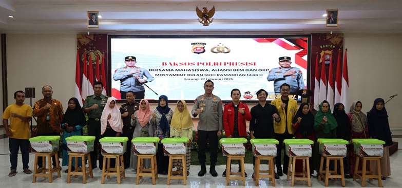 Banten,koranpelita.co – Polda Banten menggelar Bakti Sosial dalam rangka menyambut bulan Suci Ramadhan 1446 H bersama Mahasiswa, Aliansi BEM dan Organisasi Kepemidaan di wilayah hukum Polda Banten, Kamis (27/2/2025).