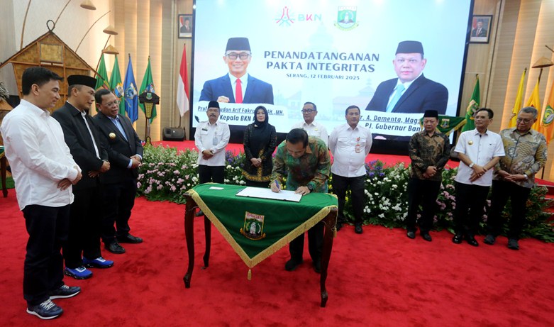 Acara ini juga dirangkaikan dengan penandatanganan Pakta Integritas oleh Penjabat (Pj) Gubernur Banten, A. Damenta, Kepala Badan Kepegawaian Negara (BKN) Republik Indonesia, Zudan Rif Fakrulloh dan Bupati/Wali Kota se-Provinsi Banten.