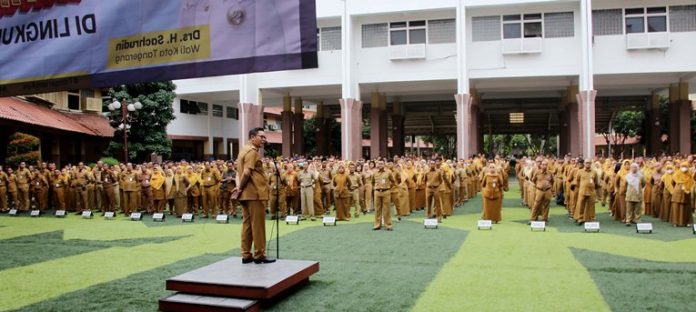 Dalam kesempatan tersebut, Maryono menyapa hangat seluruh pegawai yang hadir serta mengajak mereka untuk memiliki cinta dan ketulusan dalam melayani masyarakat Kota Tangerang.