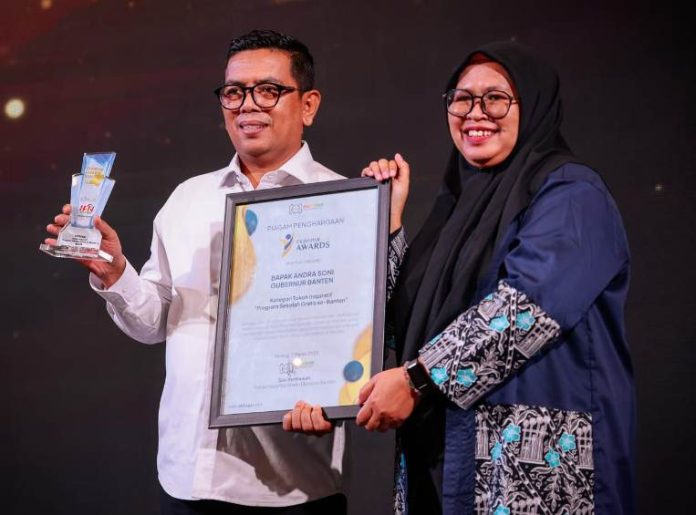 Banten,koranpelita.co – Gubernur Banten Andra Soni mendapatkan Anugerah Ekbispar Award 2025 katagori tokoh inspiratif yang diberikan Kelompok Kerja (Pokja) ekonomi Bisnis dan Pariwisata (ekbispar) Provinsi Banten , berlangsung di Ballroom Aston Serang Hotel & Convention Center, Jumat (7/3/2025).