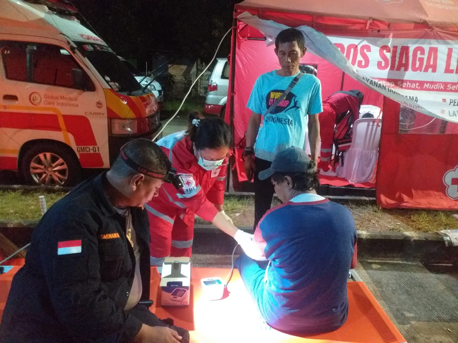 Sementara itu, seorang pedagang somay warga Sasak Bakar Tambelang tiba-tiba terjatuh akibat vertigo yang kambuh. Ia dibantu sejumlah relawan gabungan dan dibawa ke posko. Setelah diperiksa, tensinya mencapai 140/92, sehingga disarankan beristirahat.