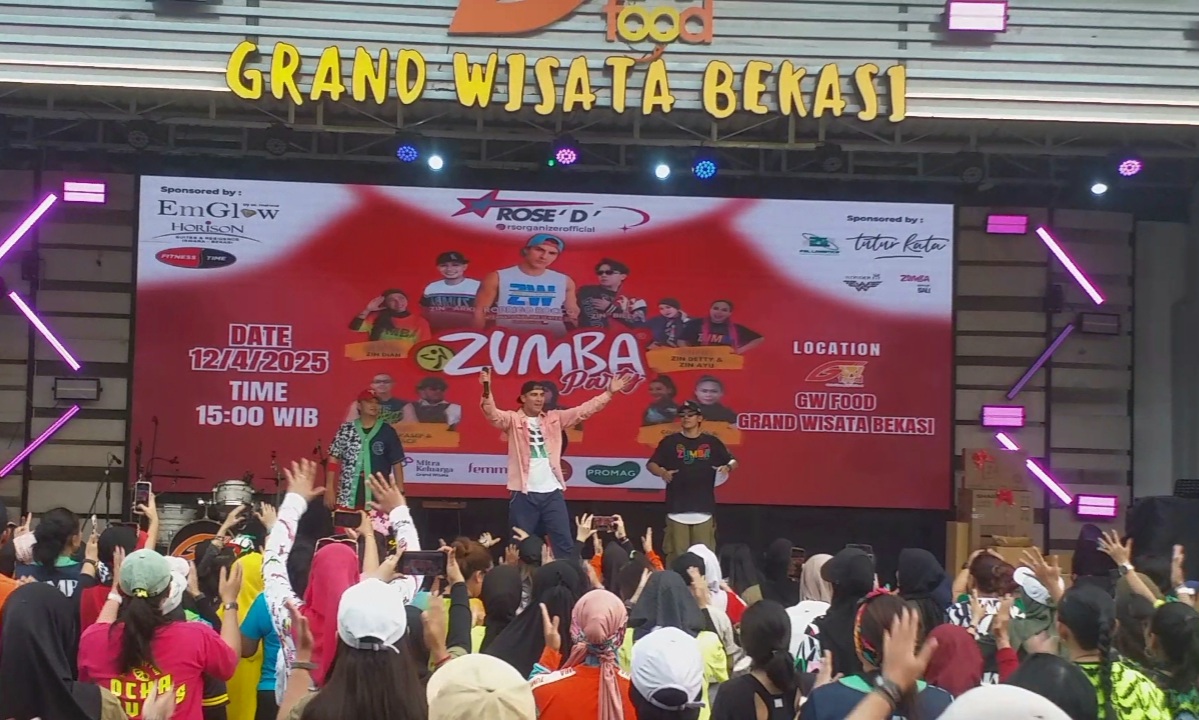 Bekasi, koranpelita co – Bintang tamu internasional asal Chili memuji antusiasme dan energi komunitas Zumba di Jabotabek pasalnya ratusan peserta dari berbagai daerah di Jabotabek dan luar wilayah, termasuk Sukabumi, memadati area GW Food Grand Wisata, Kabupaten Bekasi, pada Sabtu (12/4/2025)