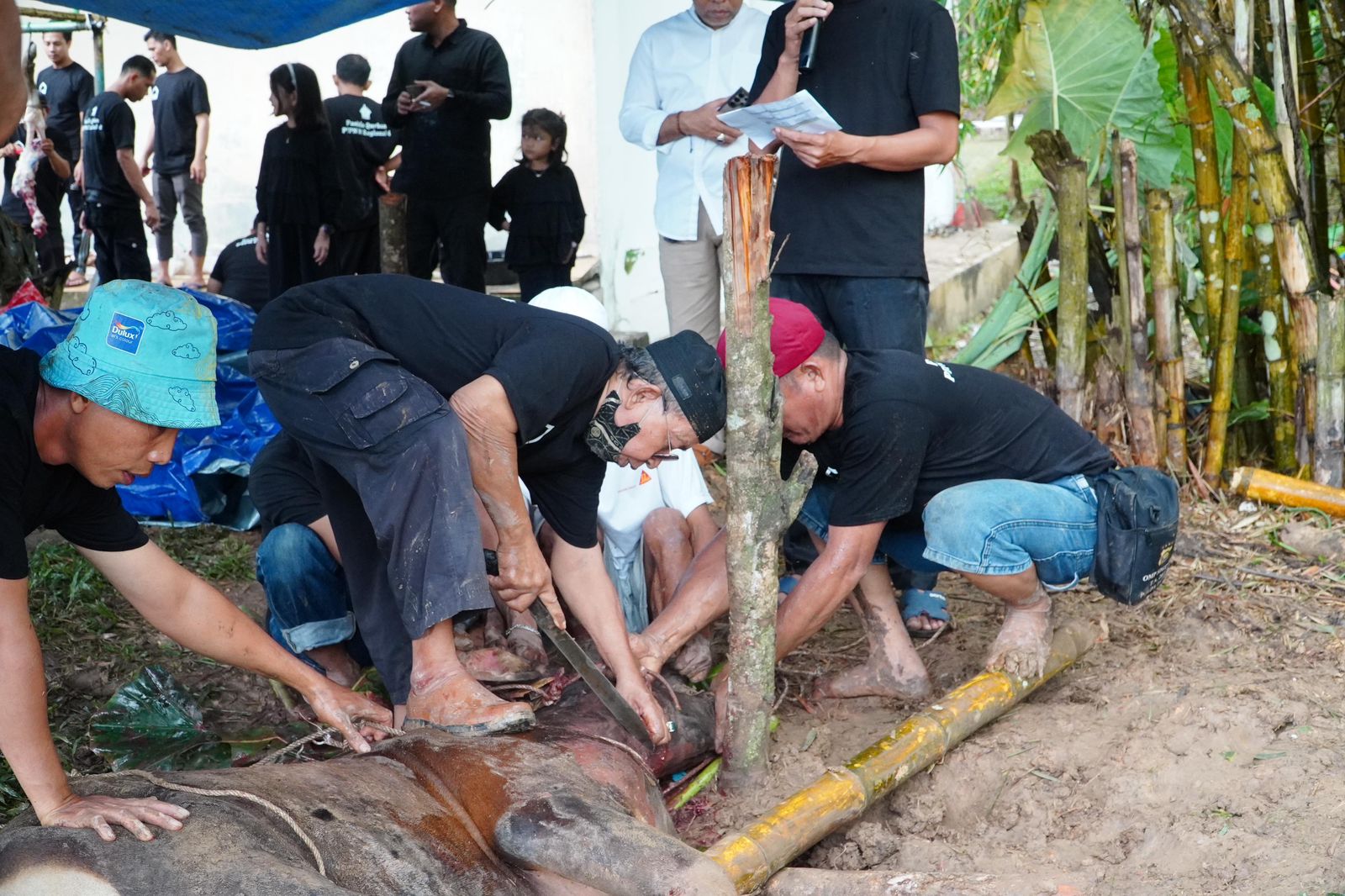 “”Alhamdulillah,,, Idul Adha tahun ini kita berqurban sapi dan kambing sebanyak 131 ekor. Seluruh unit kebun dan PKS yang ada di Jambi dan Sumbar memotong hewan qurban. Daging qurban akan dibagikan kepada pihak yang berkurban dan nantinya juga akan diberikan kepada warga sekitar yang kurang mampu,”” kata Region Head Regional 4, Khayamuddin Panjaitan saat memulai prosesi pemotongan hewan qurban.